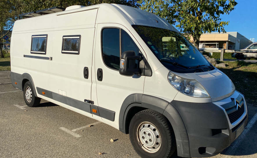Aménagement complet d'un Citroën Jumper L4H2 datant de 2013. Le client souhaitait avoir tout le confort pour y vivre à l'année en autonomie totale. C'est un fourgon équipé de 2 batteries AGM de 170 Ah, d'un chargeur DC-DC, d'un convertisseur de 1600 W, de 2 panneaux photovoltaïques de 350 W et d’un régulateur MPPT. Le chauffage c'est un Autoterm 2D, le chauffe-eau un Truma B de 10 L. La capacité en eau claire est de 160 L. Un réfrigérateur à compression Dometic de 80 L vient compléter les équipements.